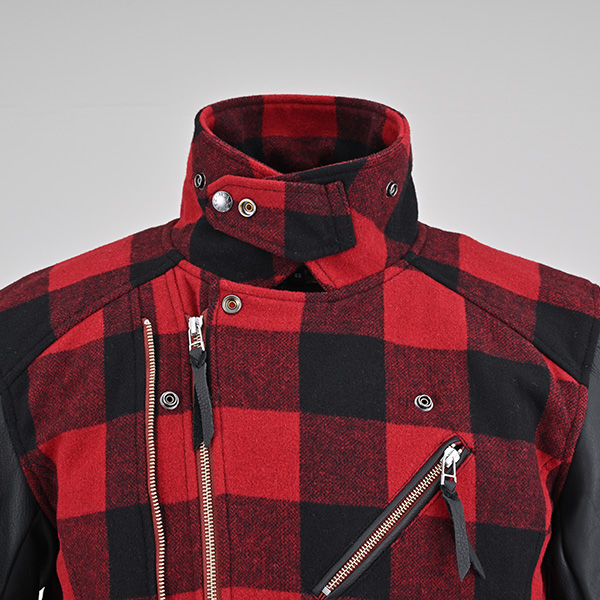 表地にPコートやダッフルコートに使用されるウールメルトン生地を使うことでオールレザーのライダースジャケットより