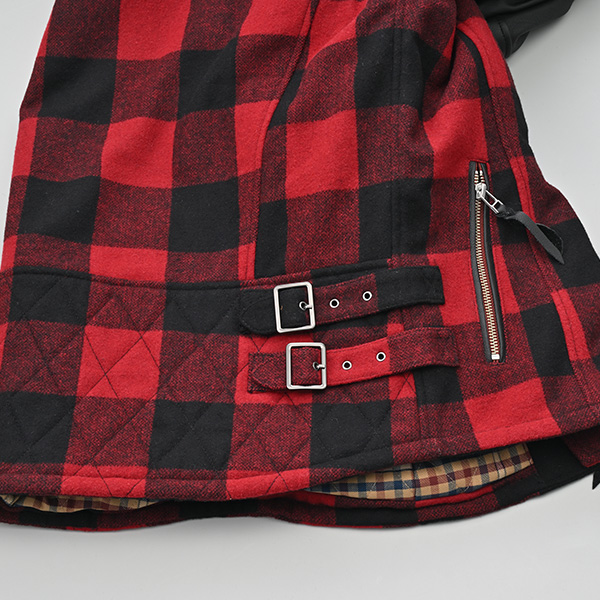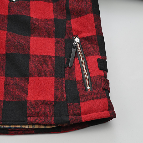 身頃裏には起毛したチェック生地に中綿をキルティングして防寒性を高め