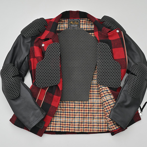 肩・肘・背中・胸に別売りのプロテクトパッドを装着可能。